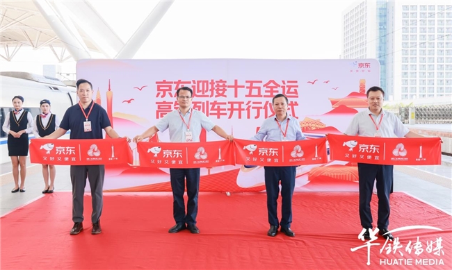 第十五屆全國運(yùn)動會和殘?zhí)貖W會的腳步日益臨近,10月14日,京東迎接十五全運(yùn)高鐵冠名列車開行儀式在廣州南站隆重舉行。十五運(yùn)會和殘?zhí)貖W會廣州賽區(qū)執(zhí)委會新聞廣電宣傳部相關(guān)領(lǐng)導(dǎo)、京東物流華南公共事務(wù)部相關(guān)負(fù)責(zé)人、華鐵傳媒集團(tuán)有限公司相關(guān)領(lǐng)導(dǎo)等出席儀式,共同見證這一里程碑時刻。