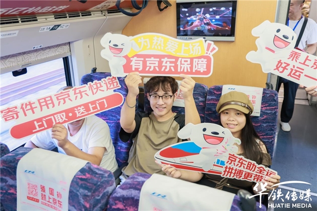 車廂內(nèi),頭片、桌貼、海報、品牌天幕、語音播報等全媒體形式,構(gòu)建了專屬于京東的品牌移動展廳,全方位展示京東在物流、電商、工業(yè)、政企業(yè)務(wù)等產(chǎn)業(yè)領(lǐng)域的全面布局。在此高度聚焦、全程陪伴的傳播環(huán)境中,疊加深層次的品牌互動活動,消費者不僅深化了對京東業(yè)務(wù)的認(rèn)知,更在情感層面建立起對品牌的信賴。京東可靠、高效的服務(wù)形象也隨之深入人心。