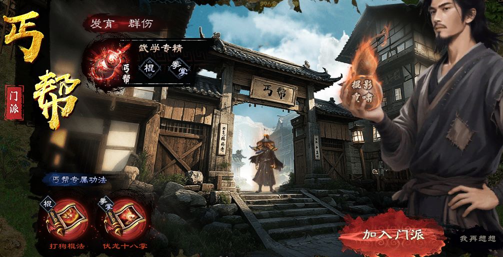 以最早拜入的丐幫為例:加入門派后還可通過幫派晉升消耗材料提升自己在幫派中的身份,身份可以由入門弟子-外門弟子-內(nèi)門弟子,最終可以成為門派長(zhǎng)老,每次身份的晉升都會(huì)提升特殊技能的效果和門派擅長(zhǎng)功法類型的傷害。