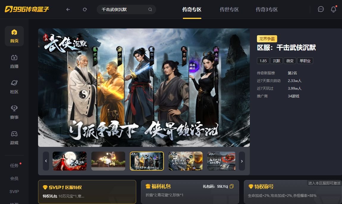 以傳奇游戲承載一個(gè)宏大震撼的武俠世界,是不是有種Max Pro Plus的大飛躍感?何況這一版是做嗨視覺、做足劇情、做實(shí)體驗(yàn)的“沉默服”。近日在國(guó)內(nèi)頭部傳奇手游平臺(tái)996傳奇盒子上,沖上“新服榜”榜眼位置的“千擊武俠沉默”就是這么燃炸飛升的一款。