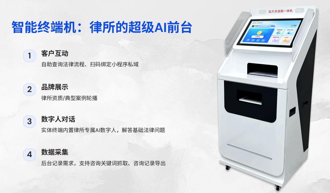 AI律所智能體聚焦律所數(shù)字化運(yùn)營(yíng)需求,通過(guò)深度融合線下終端與線上小程序,構(gòu)建一站式綜合法律服務(wù)平臺(tái)。平臺(tái)為律所執(zhí)業(yè)律師提供客戶管理、智能咨詢、品牌展示、服務(wù)配置等核心功能,形成“智能前臺(tái)”與“強(qiáng)大后臺(tái)”的雙軌體系——智能前臺(tái)全天候服務(wù)客戶,強(qiáng)大后臺(tái)則賦能律師高效工作。這一創(chuàng)新架構(gòu)全面提升了客戶服務(wù)體驗(yàn)與律所運(yùn)營(yíng)效能,是律所邁向數(shù)字化未來(lái)的可靠戰(zhàn)略伙伴。