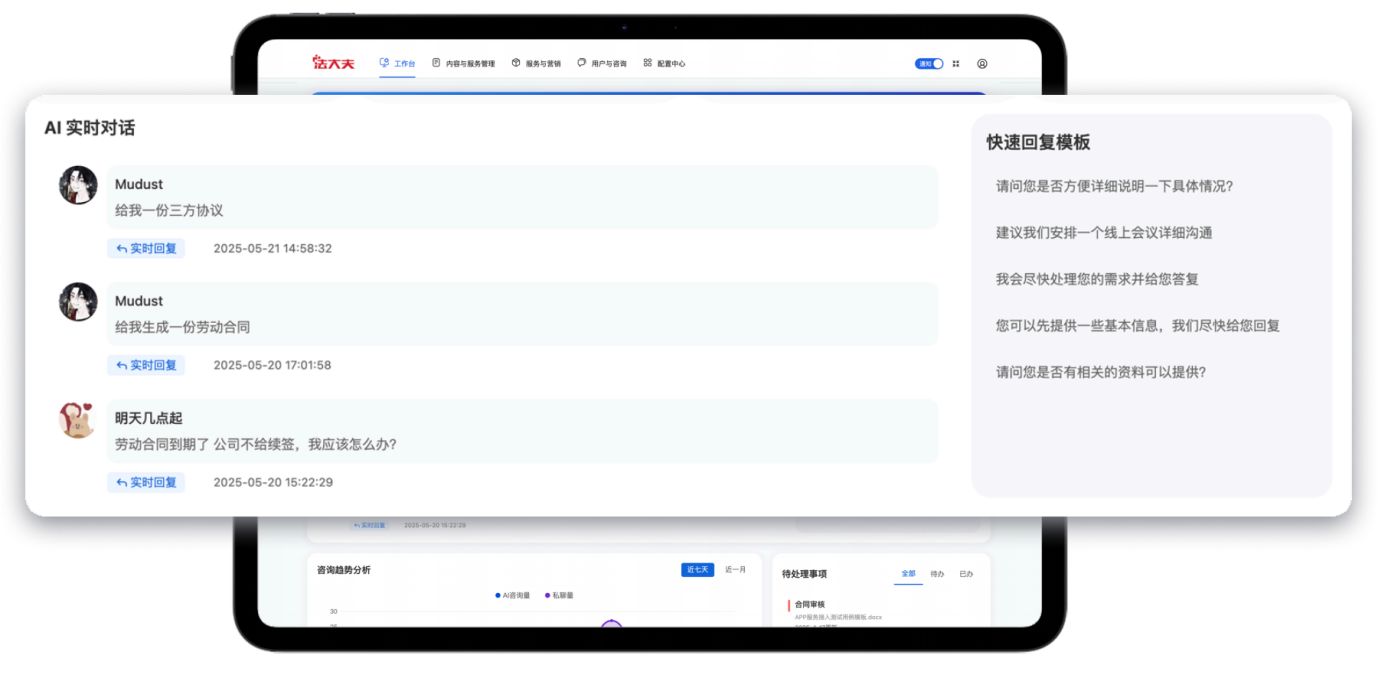 AI法律智能體作為法大夫產(chǎn)品矩陣的效能基石,深度融合AI能力與本地化部署,構(gòu)建了從"咨詢-生成-風(fēng)控-執(zhí)行"的全流程服務(wù)閉環(huán)。該智能體集成九大核心功能,涵蓋AI智能法律咨詢、智能合同審查、要素式文書生成、企業(yè)法律體檢、智能債權(quán)管理、海量合同模板、法律服務(wù)商城、賠償計(jì)算與訴訟費(fèi)、尋找律師等,提供24小時(shí)不間斷服務(wù),全面覆蓋用戶法律實(shí)務(wù)場(chǎng)景。在使用上,AI法律智能體獨(dú)創(chuàng)“軟硬協(xié)同”一體化,用戶可在設(shè)備上直接進(jìn)行合同打印、材料掃描等文件處理。而且產(chǎn)品通過(guò)“Web端+小程序+智能終端”實(shí)現(xiàn)多端覆蓋,可有效打破法律服務(wù)時(shí)空限制,目前終端已入駐深圳寶安區(qū)石巖創(chuàng)維創(chuàng)新谷黨群服務(wù)中心、龍崗寶龍專精特新產(chǎn)業(yè)園、福田河套深港科技創(chuàng)新合作區(qū)等重點(diǎn)企業(yè)園區(qū),深度嵌入園區(qū)運(yùn)營(yíng)生態(tài),成為普法落地的關(guān)鍵載體。