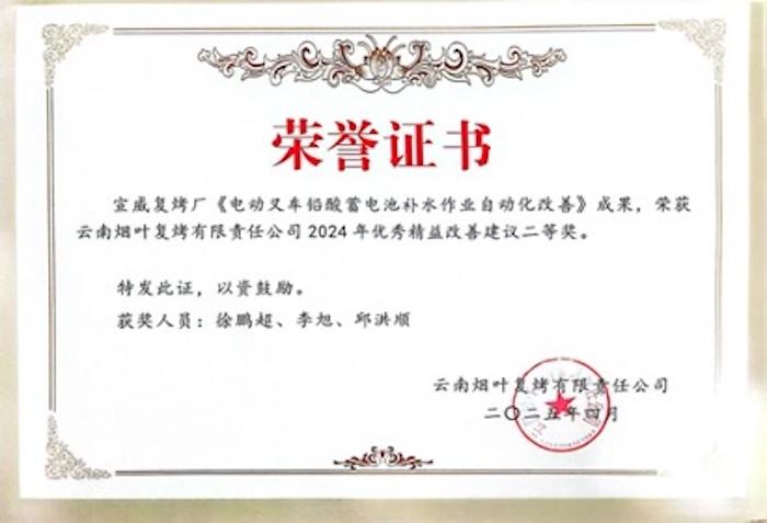 在精益管理方面,徐鵬超積極發(fā)動(dòng)部門及團(tuán)支部成員聚焦現(xiàn)場、重點(diǎn)攻關(guān),圍繞流程優(yōu)化、安全高效等目標(biāo)提出多項(xiàng)優(yōu)秀改善建議,屢獲公司獎(jiǎng)項(xiàng),如《電動(dòng)又車鉛酸蓄電池補(bǔ)水作業(yè)自動(dòng)化改善》課題在2025年4月復(fù)烤公司優(yōu)秀精益改善建議評(píng)審中獲二等獎(jiǎng)。在項(xiàng)目建設(shè)中,他勇挑重?fù)?dān):作為原煙周轉(zhuǎn)庫建設(shè)項(xiàng)目的現(xiàn)場負(fù)責(zé)人,他克服材料價(jià)格上漲、極端天氣、疫情防控等多重挑戰(zhàn),嚴(yán)格落實(shí)質(zhì)量安全責(zé)任制,有效監(jiān)督參建單位,確保項(xiàng)目如期優(yōu)質(zhì)投運(yùn);作為火災(zāi)自動(dòng)報(bào)警系統(tǒng)建設(shè)的具體負(fù)責(zé)部門牽頭人,他帶領(lǐng)團(tuán)隊(duì)優(yōu)化方案,成功完成系統(tǒng)升級(jí),補(bǔ)齊廠區(qū)在火災(zāi)自動(dòng)報(bào)警技防能力方面的短板。