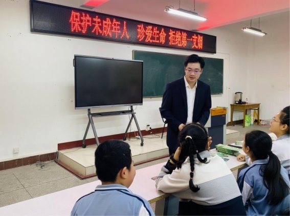 (圖為青年干部吳宗霖開展“法治進(jìn)校園”普法宣傳)