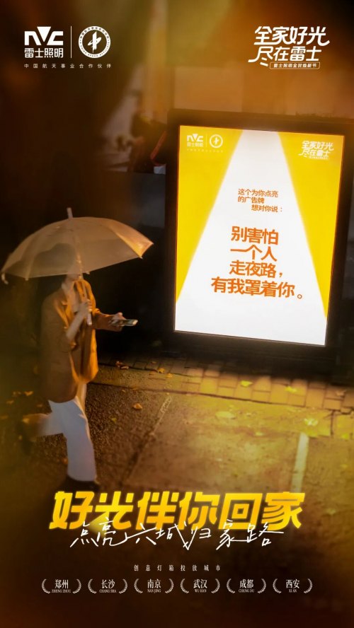 而在他們歸途的必經(jīng)之路,雷士照明的創(chuàng)意燈箱靜靜亮起。“好光伴你回家”,不只是一句簡(jiǎn)單的標(biāo)語,更是一種溫柔的提醒:在家的方向,始終有一盞燈為你點(diǎn)亮。