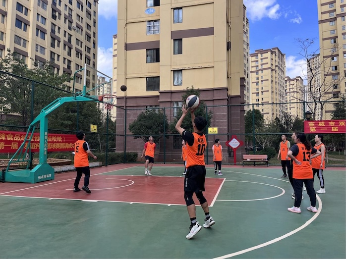 宣威復(fù)烤廠職工組隊參加屬地社區(qū)籃球比賽(保宇 攝)