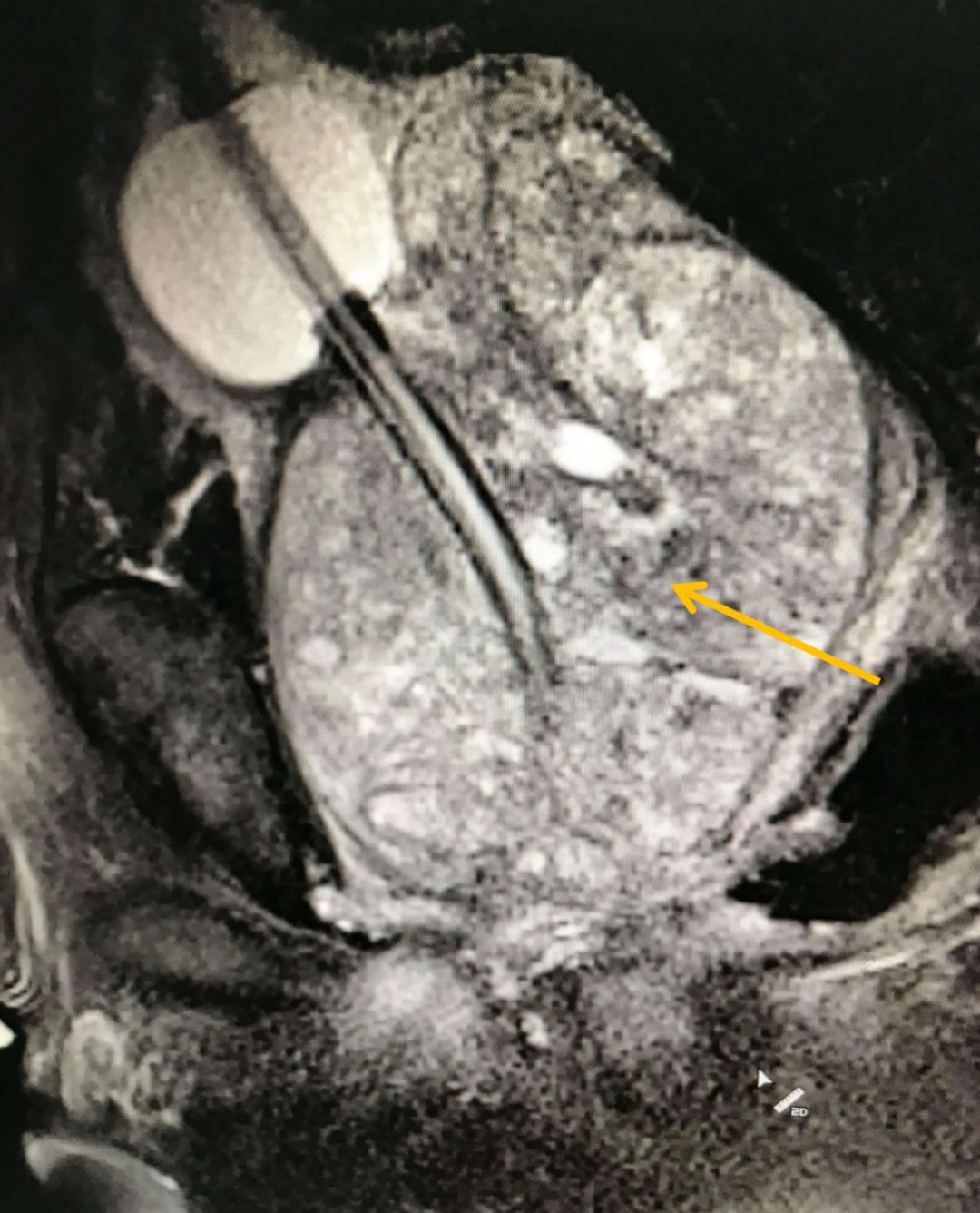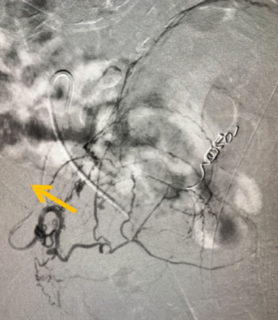 圖:微導(dǎo)管(箭頭所指)