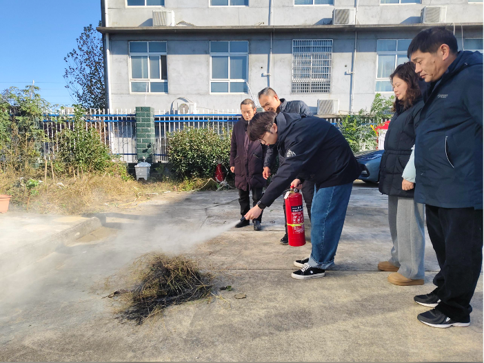在指定安全區(qū)域,安全管理員現(xiàn)場(chǎng)詳細(xì)講解并示范了干粉滅火器“提、拔、握、壓”的正確使用步驟和操作要領(lǐng);職工們親身體驗(yàn),使用滅火器成功撲滅了模擬設(shè)置的“初起火災(zāi)”。
