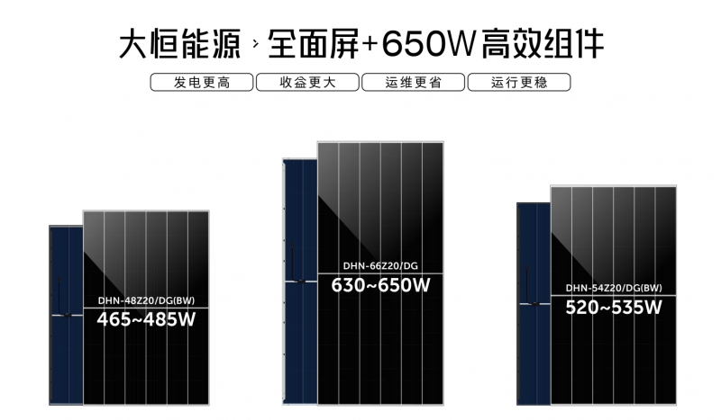 為實現(xiàn)光伏系統(tǒng)“發(fā)電更高、收益更大、運維更省、運行更穩(wěn)”的目標(biāo),大恒能源通過持續(xù)技術(shù)創(chuàng)新,重塑產(chǎn)品全生命周期的價值標(biāo)準(zhǔn),在核心材料與關(guān)鍵工藝等維度集中突破:采用大硅片+半片鈍化+DBB技術(shù),縮短電流傳輸路徑,降低能量損耗,大幅提升電池受光面積,未來可繼續(xù)疊加多分片等技術(shù),實現(xiàn)更高的組件效率;運用新型提效輔材優(yōu)化封裝工藝,保障電站長期穩(wěn)定運行;加持全面屏防積灰技術(shù),實現(xiàn)發(fā)電量提升6-15%,運維降本超50%。