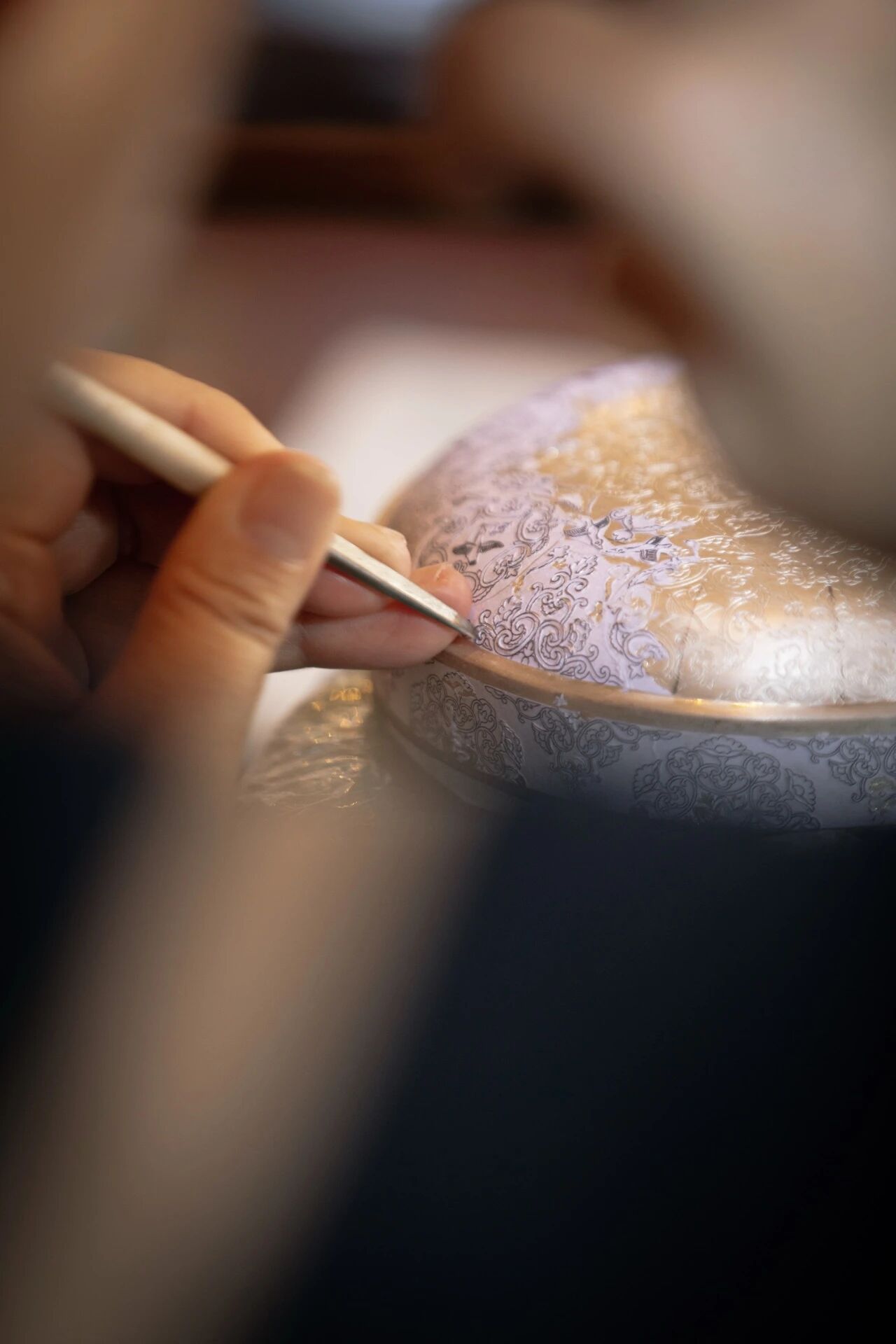 茶會(huì)期間,還特邀楠書(shū)房的金銀器匠人現(xiàn)場(chǎng)演示鏨刻、包金兩項(xiàng)代表性傳統(tǒng)工藝,生動(dòng)呈現(xiàn)精美器物從坯料到成品的蛻變過(guò)程,讓嘉賓們直觀感受傳統(tǒng)工藝的獨(dú)特魅力。