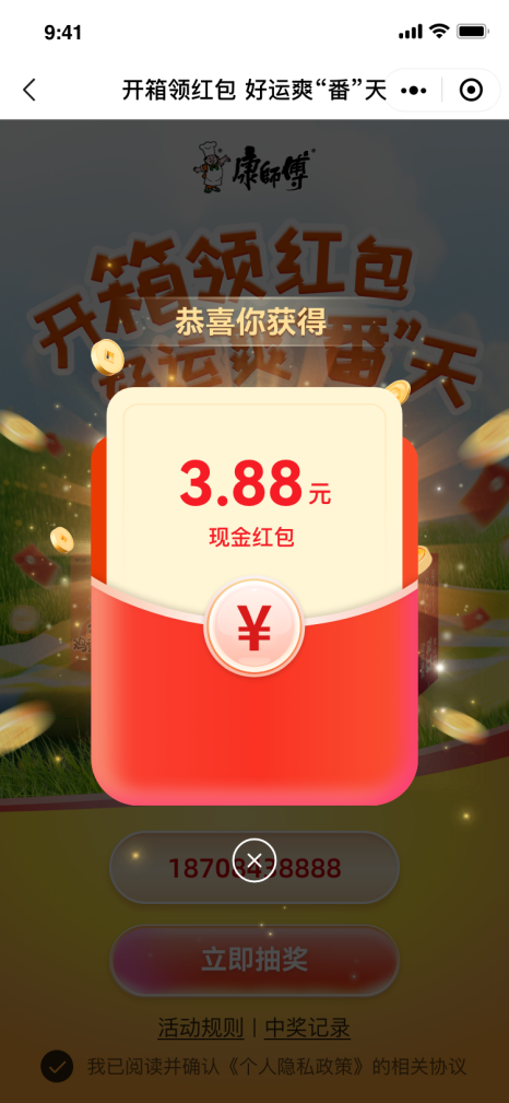 開箱有喜,點(diǎn)燃終端進(jìn)貨熱情!康師傅以“現(xiàn)金紅包”為核心引擎,啟動(dòng)了一場全方位的增長攻勢,吸引門店更加積極地進(jìn)貨;同時(shí),箱內(nèi)碼巧妙地將“開箱有獎(jiǎng)”的樂趣傳遞給消費(fèi)者,精準(zhǔn)打通從“進(jìn)貨”到“動(dòng)銷”的任督二脈,驅(qū)動(dòng)產(chǎn)品快速流轉(zhuǎn),在門店內(nèi)自發(fā)形成“賣得快,補(bǔ)得勤”的銷售飛輪。
