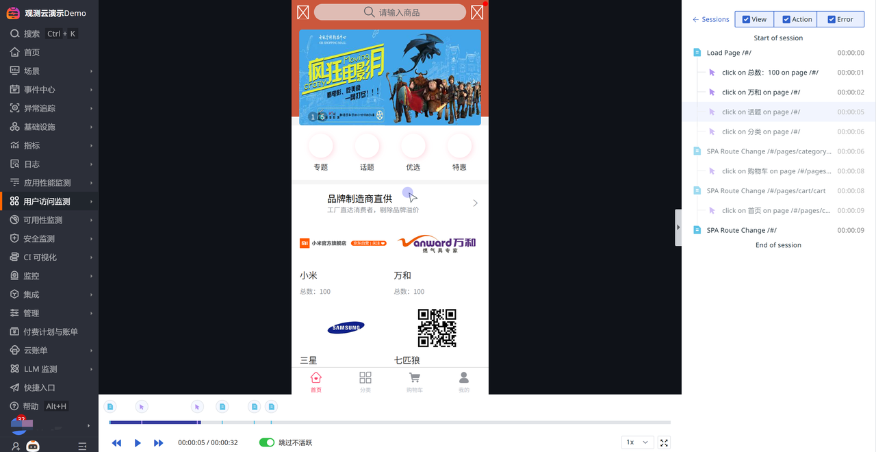 ● 全鏈路監(jiān)控:從用戶行為到網絡請求,從頁面加載到錯誤追蹤,全方位覆蓋