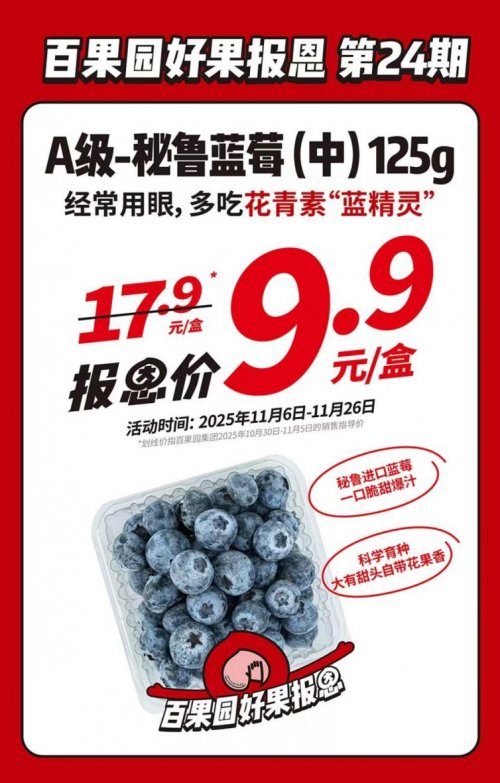 “好果報(bào)恩”活動推出以來,百果園始終以高品質(zhì)高性價(jià)比為核心理念,致力于將全球優(yōu)質(zhì)水果帶給更多消費(fèi)者。此次第24期A級秘魯藍(lán)莓的推出,不僅延續(xù)了活動的初心宗旨,更直觀展現(xiàn)了品牌在供應(yīng)鏈把控與品質(zhì)管理上的硬實(shí)力,讓更多消費(fèi)者可以品嘗導(dǎo)精選時令的優(yōu)質(zhì)果品,輕松享受高品質(zhì)水果生活。
