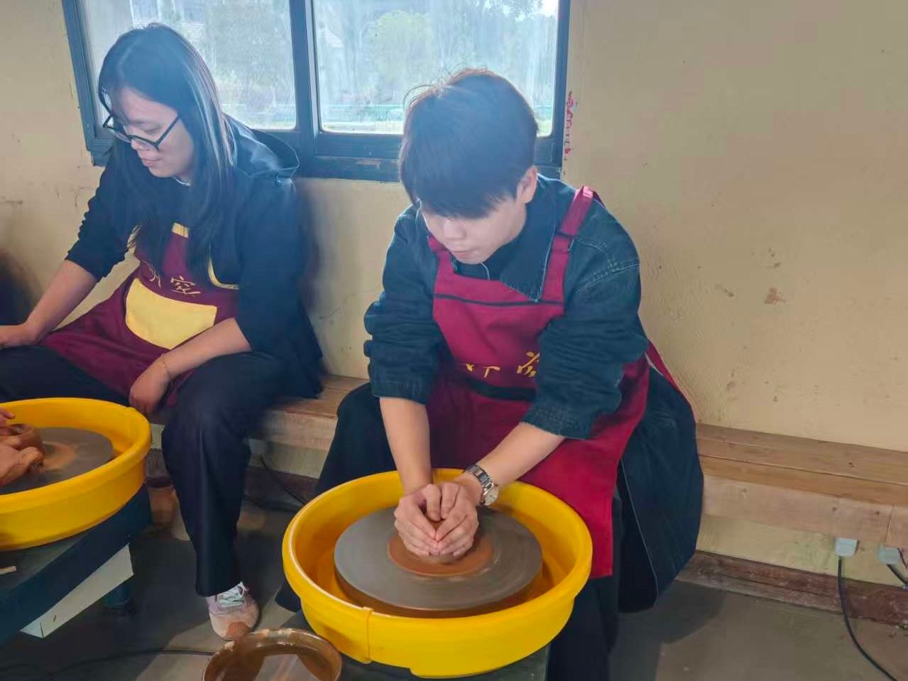 在省級(jí)非遺傳承人王師傅的工作室里,黨員們圍坐在拉坯機(jī)前反復(fù)練習(xí)?!澳嗔虾恳珳?zhǔn)把控,轉(zhuǎn)盤速度得手部力度配合著來(lái)?!蓖鯉煾颠吺痉哆呏v解。經(jīng)過(guò)數(shù)次學(xué)習(xí),黨員們已能獨(dú)立完成基礎(chǔ)器型制作。