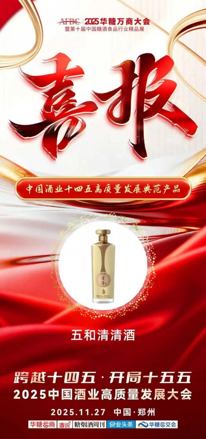 11月27日上午,“跨越十四五·開局十五五”——2025中國酒業(yè)高質(zhì)量發(fā)展大會,聚焦酒業(yè)在產(chǎn)業(yè)周期中的破局增長,總結(jié)酒業(yè)十四五成就、擘畫十五五藍圖,為行業(yè)厘清發(fā)展脈絡(luò),共啟中國酒業(yè)新未來。中國糖酒食品經(jīng)銷商進化大會暨“十四五”優(yōu)秀經(jīng)銷商表彰盛典活動中,五和清清酒榮膺“中國酒業(yè)十四五高質(zhì)量發(fā)展典范產(chǎn)品”稱號。
