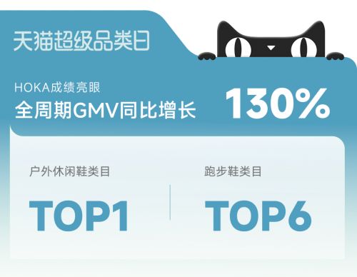 精準(zhǔn)的貨品策略與高效的運(yùn)營執(zhí)行,推動(dòng)HOKA在本次天貓超級(jí)品牌日交出亮眼成績(jī)單:活動(dòng)全周期GMV同比增長(zhǎng)130%?;顒?dòng)期間,HOKA位列天貓戶外休閑鞋類目TOP 1,跑步鞋類目TOP 6,實(shí)現(xiàn)類目排名躍升。此外,通過線上線下的聯(lián)動(dòng),HOKA的品牌形象更加深入人心,不僅實(shí)現(xiàn)了短期銷量突破,更為長(zhǎng)期品牌建設(shè)奠定了堅(jiān)實(shí)基礎(chǔ)。