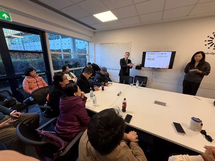 11月28日上午,研修團開展“Tour of Cambridge Science Parks and Incubator with Lecture(劍橋科技園區(qū)考察與孵化器參訪及講座)”核心環(huán)節(jié)。劍橋科技園區(qū)作為全球標桿性科技創(chuàng)新集群,集聚了大量高科技企業(yè)、研發(fā)機構與創(chuàng)業(yè)孵化平臺,形成完整創(chuàng)新生態(tài)體系。考察期間,成員們走訪園區(qū)內人工智能實驗室、清潔能源研發(fā)中心及科技創(chuàng)業(yè)孵化器,實地調研科技成果轉化流程機制,重點聚焦產學研協(xié)同創(chuàng)新模式構建邏輯。
