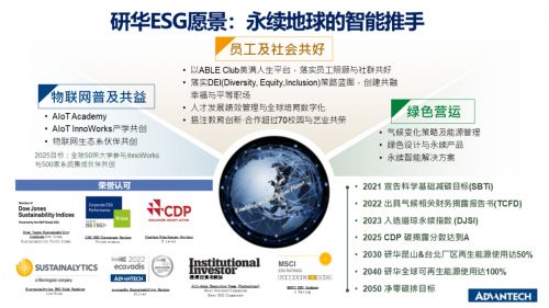 作為智能地球的推動(dòng)力量,研華一直將永續(xù)作為企業(yè)長期發(fā)展目標(biāo),以 “智能地球的推手” 之姿,將永續(xù)理念深度融入經(jīng)營戰(zhàn)略縱深。圍繞 “綠色營運(yùn)”“物聯(lián)網(wǎng)普及共益”“員工與社會共好” 三大主軸,積極在綠色運(yùn)營、節(jié)能減碳、產(chǎn)學(xué)合作、多元職場共融等關(guān)鍵領(lǐng)域持續(xù)深耕,以系統(tǒng)性行動(dòng)踐行長期承諾。