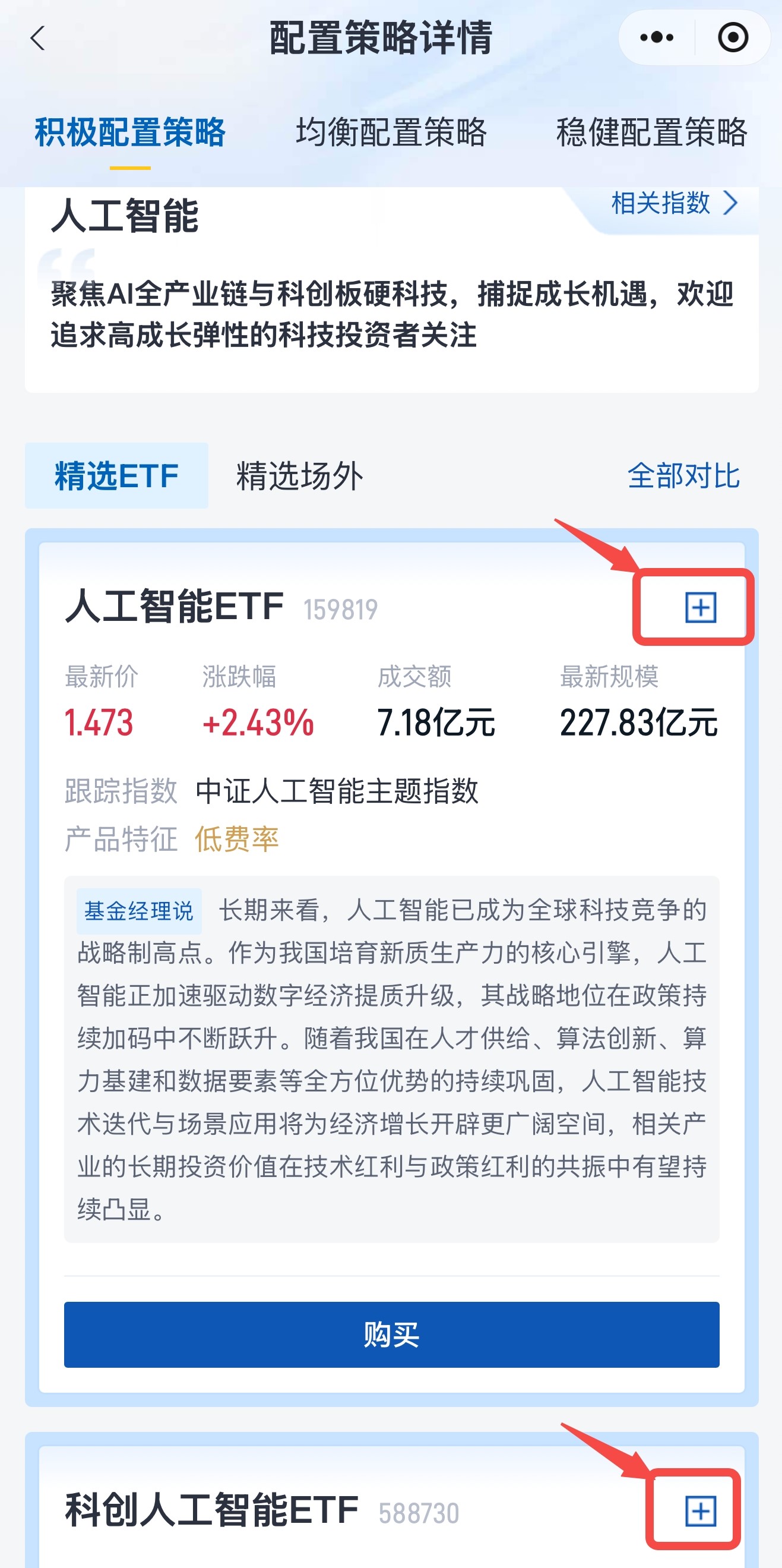 此外,在精選專區(qū)瀏覽熱門精選和配置策略的產(chǎn)品時(shí),也可直接將產(chǎn)品添加到自選列表。