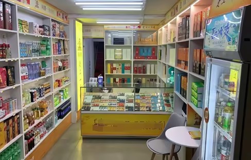 圖為煙酒店整店環(huán)境改造后,店鋪明亮整潔,增設(shè)休閑桌椅
