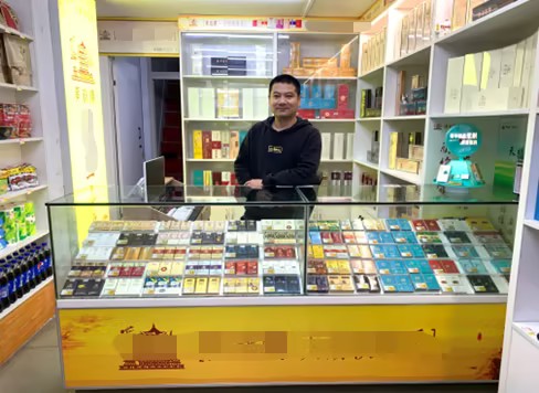 圖為店主站在整潔明亮的柜臺旁,店鋪商品陳列有序,氛圍溫馨