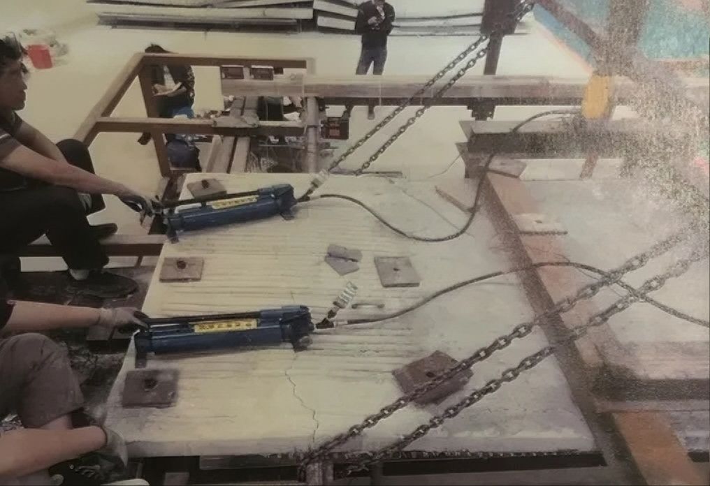 在中國(guó)建筑東北設(shè)計(jì)研究院有限公司老辦公樓加固項(xiàng)目中,為給項(xiàng)目提供關(guān)鍵技術(shù)支持,卡本聯(lián)合中國(guó)建筑東北設(shè)計(jì)院開(kāi)展專(zhuān)項(xiàng)模擬試驗(yàn)。實(shí)驗(yàn)條件下,當(dāng)樓板被加載至極限承載狀態(tài)時(shí),經(jīng)卡本高強(qiáng)鋼絲布加固的樓板承載力可達(dá)未加固樓板的4倍之多!項(xiàng)目實(shí)際完成后,針對(duì)樓板和梁結(jié)構(gòu)的加固,高強(qiáng)鋼絲布與專(zhuān)用砂漿形成的“三明治”復(fù)合層厚度僅為20mm左右,且其承載力和穩(wěn)定性均得到顯著提升。