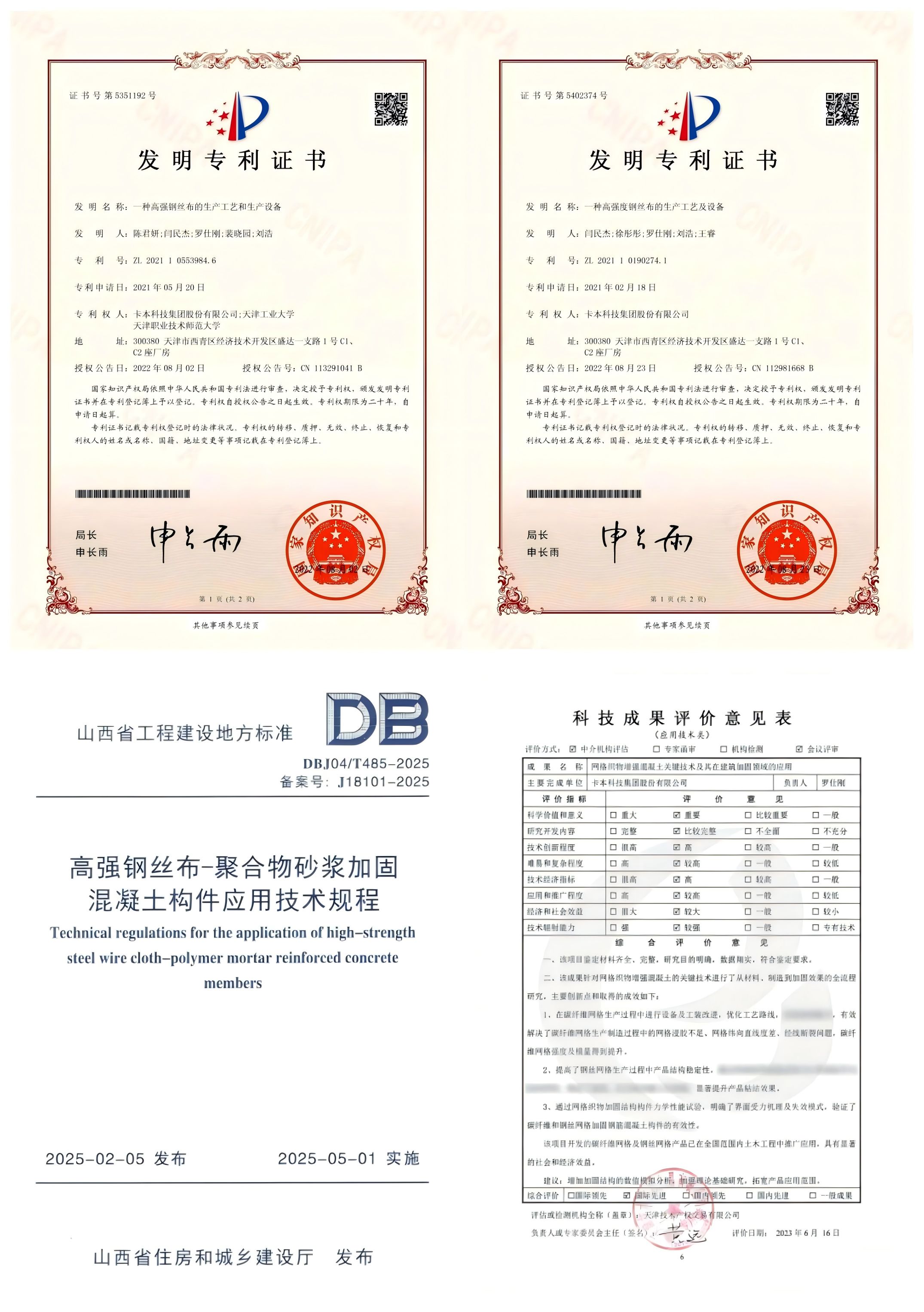 在此之后,卡本又深度參與了山西省地方標(biāo)準(zhǔn)《高強(qiáng)鋼絲布-聚合物砂漿加固混凝土構(gòu)件應(yīng)用技術(shù)規(guī)程》的編制,繼續(xù)為不同地域的加固設(shè)計(jì)與施工提供專(zhuān)業(yè)支撐。卡本高強(qiáng)鋼絲布加固材料已累計(jì)獲得29項(xiàng)專(zhuān)利授權(quán),相關(guān)科技成果經(jīng)權(quán)威鑒定達(dá)到 “國(guó)際先進(jìn)” 水平,技術(shù)硬實(shí)力獲行業(yè)高度肯定。未來(lái),卡本將繼續(xù)以硬核技術(shù)為支撐,為更多歷史建筑提供“守舊煥新”的定制化解決方案,讓每一棟承載時(shí)代記憶的老建筑,既能留住歲月的模樣,又能扛起未來(lái)的使命,在歷史與現(xiàn)代的碰撞中繼續(xù)新生。