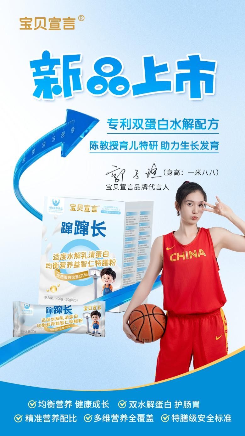 母嬰行業(yè)營銷再掀巨浪!“躥躥長寶貝宣言”奶粉重磅官宣:特邀身高1米88的中國女籃冠軍球員郭子瑄擔(dān)任品牌代言人,同步啟用“寶貝宣言+躥躥長”雙商標(biāo)布局,以頂級代言背書+超強(qiáng)記憶點(diǎn)命名的雙重王牌,精準(zhǔn)直擊家長“望子長高”的核心需求,堪稱母嬰營銷巔峰之作,勢將掀起全民搶購狂潮!