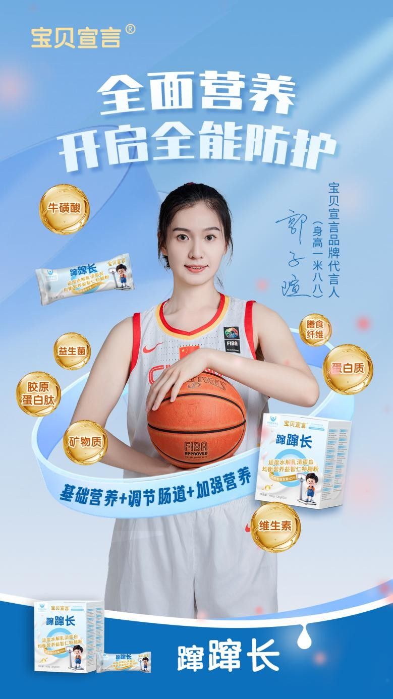 家長對孩子身高發(fā)育的焦慮,是母嬰消費(fèi)的核心痛點(diǎn),而此次代言人選擇堪稱精準(zhǔn)破局的神來之筆。郭子瑄作為中國職業(yè)女籃名將,手握WCBA全明星、女籃亞洲杯亞軍、U16女籃亞青賽冠軍等多項(xiàng)榮譽(yù),更關(guān)鍵的是其1米88的高挑身形,自帶“長高”說服力,成為最直觀的產(chǎn)品名片。