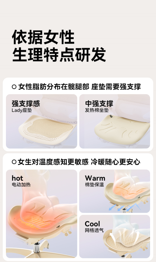 這是人體工學第一次把“溫感科學”納入久坐健康系統,是西昊對女性的真正關懷。