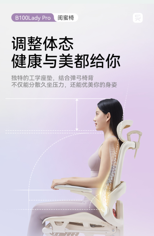 這便是 西昊B100 Lady Pro 的誕生背景——行業(yè)首款從女性身體結構、體態(tài)行為與久坐場景出發(fā)打造的 女性專屬健康久坐人體工學電腦椅。