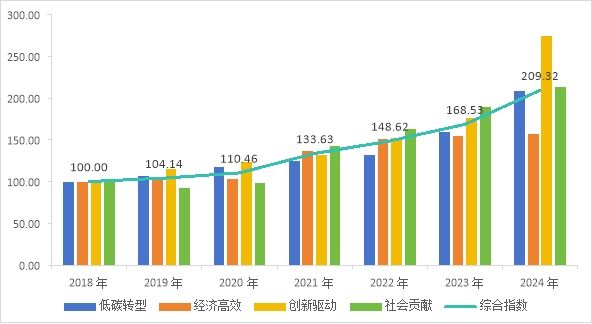 指數(shù)結(jié)果顯示,2024年,內(nèi)蒙古現(xiàn)代能源經(jīng)濟(jì)發(fā)展指數(shù)增長(zhǎng)至209.32點(diǎn),同比增速達(dá)24.21%,發(fā)展質(zhì)速較前期進(jìn)一步提升,年均復(fù)合增速達(dá)13.10%,其中,低碳轉(zhuǎn)型、創(chuàng)新驅(qū)動(dòng)和社會(huì)貢獻(xiàn)三項(xiàng)指標(biāo)較基期均已實(shí)現(xiàn)翻倍增長(zhǎng),現(xiàn)代能源經(jīng)濟(jì)的高速發(fā)展為內(nèi)蒙古區(qū)域經(jīng)濟(jì)發(fā)展格局注入了巨大動(dòng)能。從“挖煤賣煤”到“追風(fēng)逐日”,從“能源基地”到“綠能高地”,內(nèi)蒙古走出了一條獨(dú)具特色的能源革命之路。