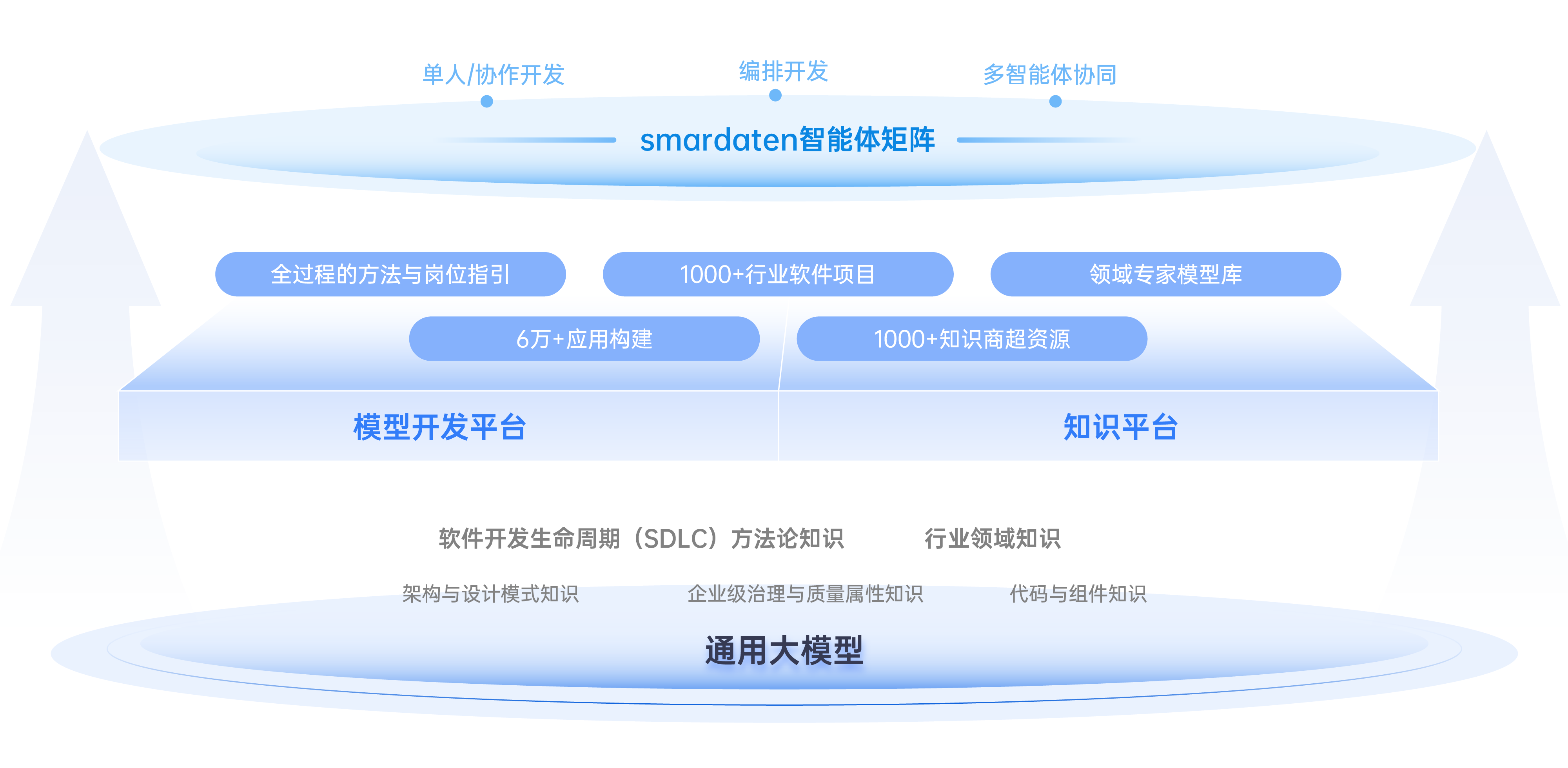 Agent Studio 作為 smardaten 平臺(tái)AI原生大腦,以知識(shí)平臺(tái)為底座,基于通用大模型,通過(guò)模型開(kāi)發(fā)平臺(tái)實(shí)現(xiàn)高效的模型訓(xùn)練與調(diào)試,構(gòu)建搭載于smardaten不同應(yīng)用場(chǎng)景的專用大模型(九龍大模型),并最終形成用戶可直接上手使用的覆蓋軟件工程、數(shù)據(jù)智能、業(yè)務(wù)流等應(yīng)用場(chǎng)景的智能體矩陣。