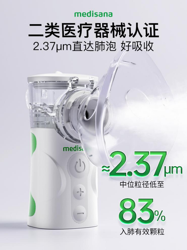 在眾多霧化器品牌中,medisana馬德??低瞥龅腜ro6+和Aerolns兩款智能霧化器,憑借差異化技術(shù)優(yōu)勢,為全人群提供精準(zhǔn)呼吸道護(hù)理方案,均已獲得中國二類醫(yī)療器械注冊證,符合國家醫(yī)療設(shè)備標(biāo)準(zhǔn)。