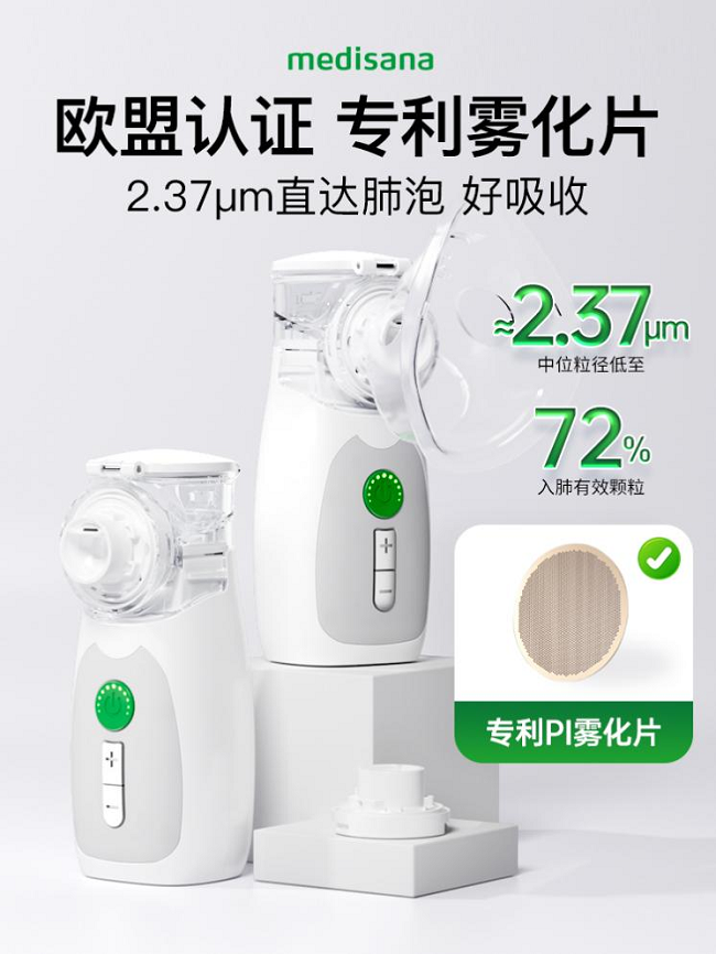 而專為嬰幼兒設(shè)計的medisana馬德??礎(chǔ)erolns霧化器,在智能適配方面實現(xiàn)重大突破。產(chǎn)品內(nèi)置美國進(jìn)口呼吸感應(yīng)器,能精準(zhǔn)捕捉寶寶呼吸節(jié)奏,僅在吸氣階段釋放藥霧,呼氣時暫停給藥,從根本上解決傳統(tǒng)霧化器“呼氣浪費藥霧”的痛點。同時,該霧化器還同時擁有直噴與呼吸感應(yīng)雙模式設(shè)計,能適配鼻腔、咽喉等不同部位護(hù)理需求,特別適合呼吸道嬌嫩的嬰幼兒群體。同時,其搭載的專利高分子PI霧化片,能夠穩(wěn)定輸出2.37微米細(xì)膩霧粒,1分鐘80μg的藥物遞送量可讓高濃度藥液快速抵達(dá)肺部。