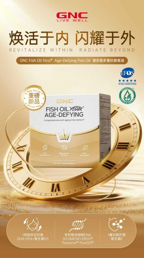 在第八屆中國(guó)國(guó)際進(jìn)口博覽會(huì)(以下簡(jiǎn)稱(chēng)“進(jìn)博會(huì)”)期間,全球領(lǐng)先的膳食營(yíng)養(yǎng)補(bǔ)充劑品牌GNC健安喜亮相央視“進(jìn)博新品匯”平臺(tái),全球首發(fā)GNC Fish Oil Xtra?多重抗衰魚(yú)油(下稱(chēng)“小金鉆”)。作為GNC旗下首款復(fù)配型魚(yú)油,該產(chǎn)品不僅標(biāo)志著GNC對(duì)心腦血管健康領(lǐng)域的戰(zhàn)略聚焦,更旨在為市場(chǎng)開(kāi)辟一條“由內(nèi)而外”的全景抗衰新路徑。