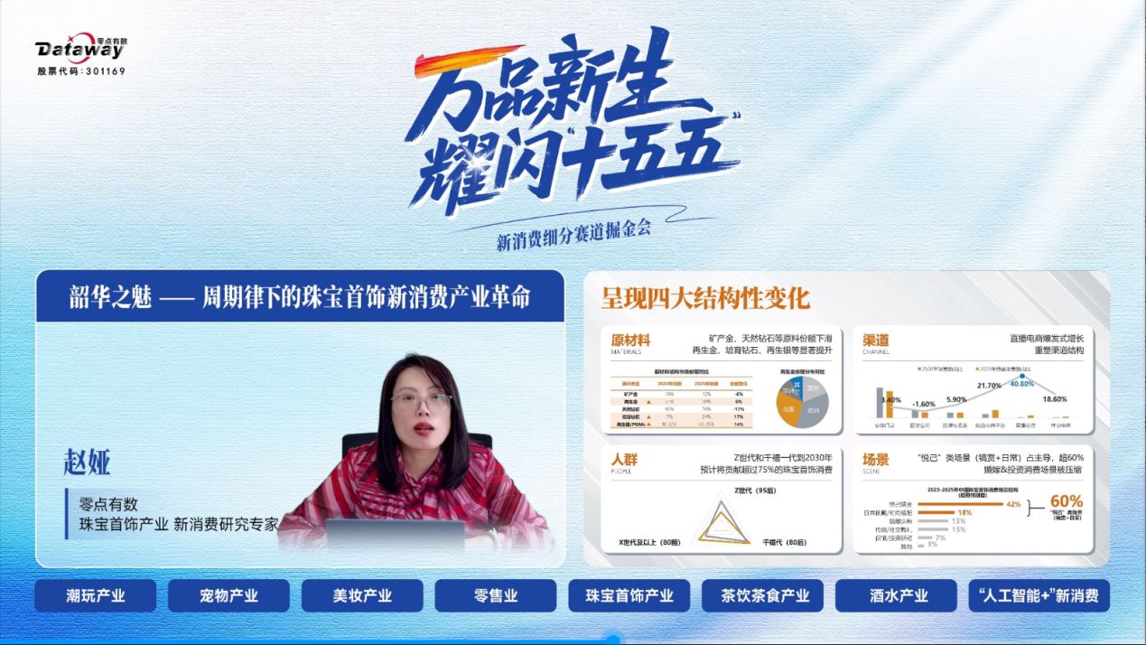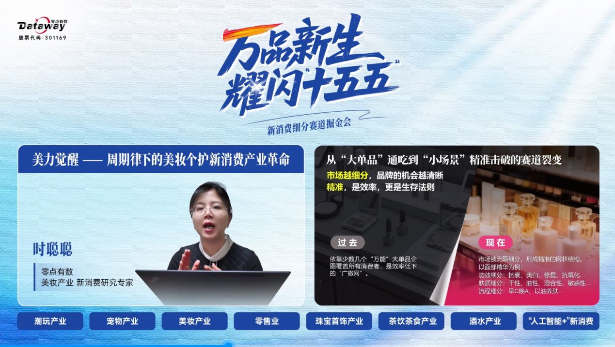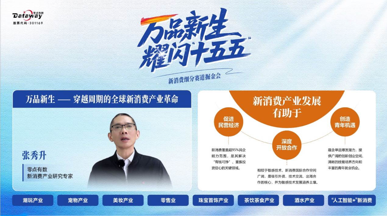 2025年12月17日,由零點有數(shù)主辦的“萬品新生,耀閃‘十五五’——新消費細(xì)分賽道掘金會”在線成功舉辦?;顒油ㄟ^多平臺同步直播,吸引了來自消費產(chǎn)業(yè)、投資機構(gòu)、研究學(xué)者及媒體代表的廣泛關(guān)注。本次活動緊扣“十五五”規(guī)劃中對高質(zhì)量消費品供給的要求,探討新消費產(chǎn)業(yè)革命趨勢與機遇。零點有數(shù)新消費研究專家團首次公開亮相,深入解讀潮玩、寵物、美妝、零售、珠寶、茶飲、酒水等細(xì)分賽道發(fā)展動態(tài),并探討人工智能等技術(shù)對消費場景的賦能路徑,旨在洞察趨勢、凝聚共識、賦能產(chǎn)業(yè),共同探尋細(xì)分賽道中的增長機遇。