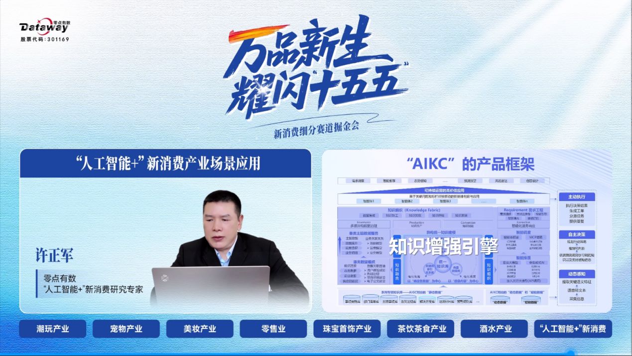 最后,零點有數(shù)CEO張軍總結(jié)了公司在推動新消費產(chǎn)業(yè)革命中的雙重角色:在政府側(cè),協(xié)助地方做好產(chǎn)業(yè)規(guī)劃與賽道篩選,通過自主研發(fā)的評估模型量化評估新消費產(chǎn)業(yè)潛力,助力地方政府提高新消費產(chǎn)業(yè)高質(zhì)量發(fā)展方向;在企業(yè)側(cè),通過“三級智能引擎”(技術(shù)層、數(shù)據(jù)層、運營層)賦能具體商業(yè)實踐,推動產(chǎn)品創(chuàng)新、供應(yīng)鏈管理和終端服務(wù)全鏈條的數(shù)據(jù)驅(qū)動敏捷迭代。她介紹,零點有數(shù)通過AIKC打造“零念”等智能平臺,幫助企業(yè)在產(chǎn)品創(chuàng)新、供應(yīng)鏈管理、終端服務(wù)等全鏈條實現(xiàn)數(shù)據(jù)驅(qū)動的敏捷迭代與價值增長。