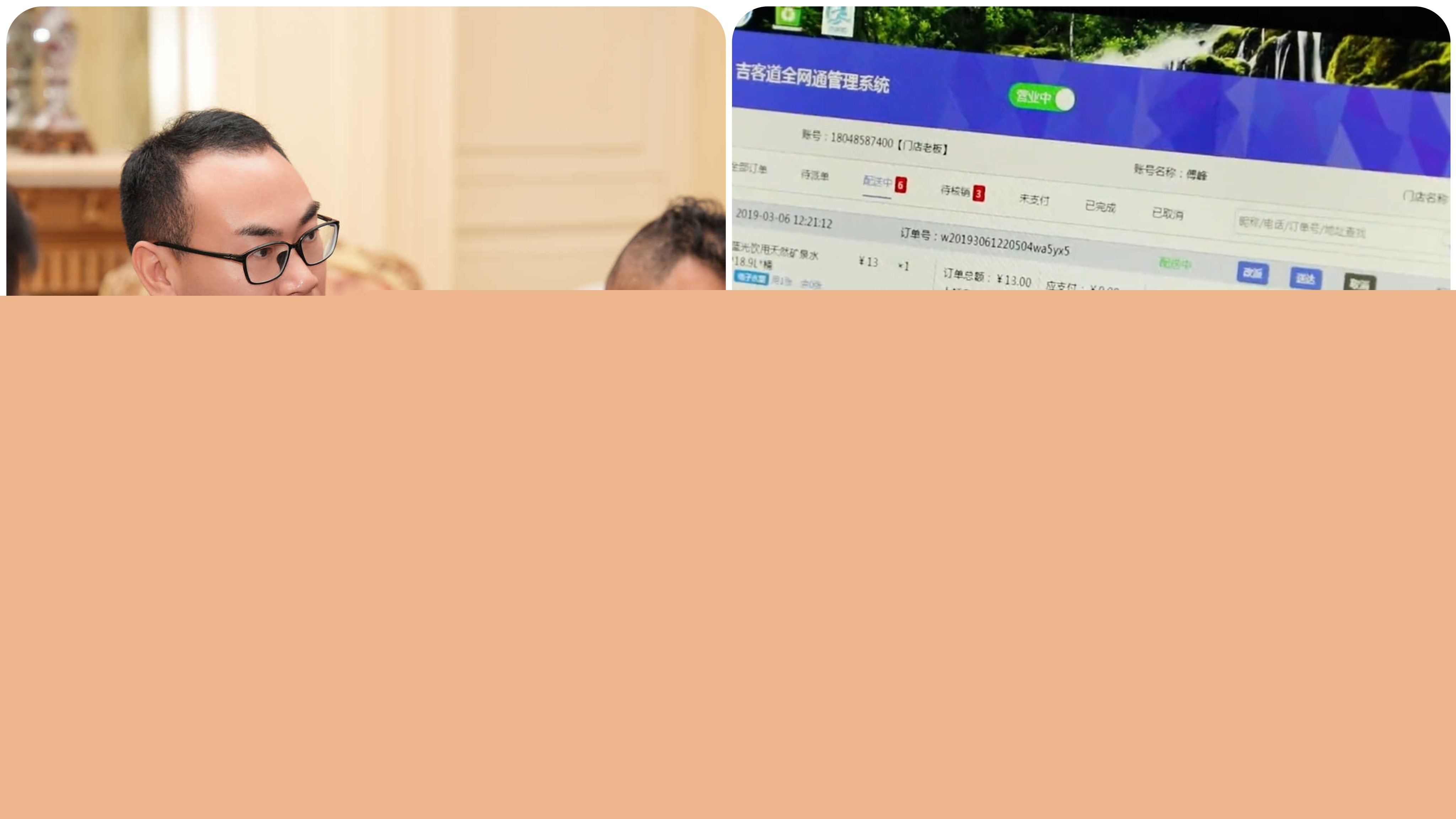 2016年,陳森和廖興成在成都聯(lián)合創(chuàng)辦了吉客道,推出“馬上到生活配送”,讓消費者通過微信公眾號在線訂水。但是,不到三個月,他們就覺得這個事情不對,因為水站認為客戶是自己私有資產,非常抵觸公共的訂水平臺。出于廖興成對水站老板的深度理解,他說:水站需要的是自己的訂水平臺。于是吉客道立即修正定位,就為水站做工具、做支撐;讓再小的水站,都能擁有屬于自己的訂水平臺?!沁@句話,不僅成為吉客道創(chuàng)立的信條,也悄然開啟了一場靜默卻深刻的行業(yè)數(shù)字化10年的革命。