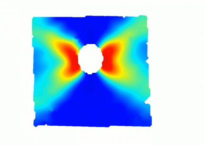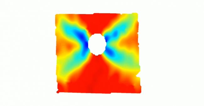 某航空實(shí)驗(yàn)室,引入中科君達(dá)視界提供的千眼狼高溫數(shù)字圖像相關(guān)(DIC)系統(tǒng),對具有特殊幾何形狀的方形金屬試件在高溫?zé)彷d下的非均勻變形行為進(jìn)行研究。