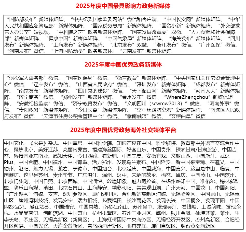 2025年度中國(guó)優(yōu)秀政務(wù)新媒體
