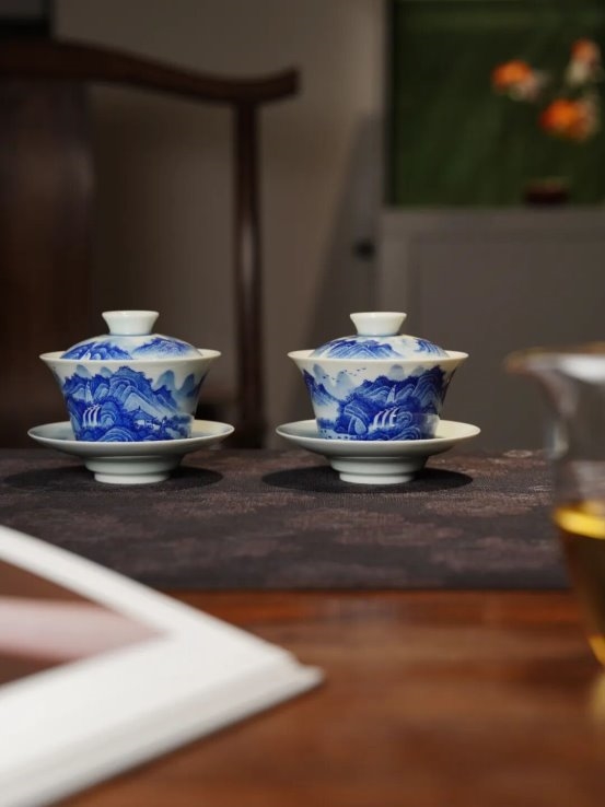 國韻交融,見山燒青花山水蓋碗盡顯東方美學(xué)