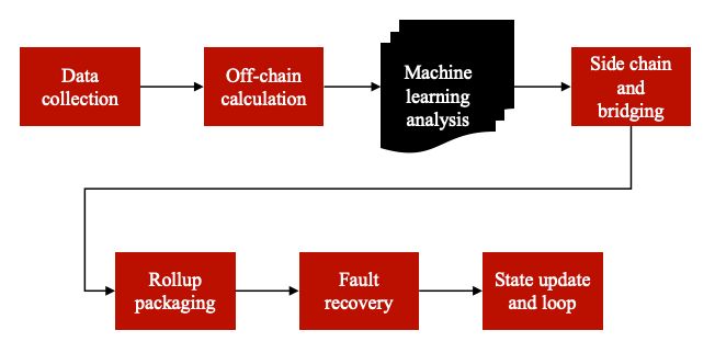 整體流程以閉環(huán)形式結(jié)束:主鏈確認rollup后,更新全局狀態(tài),并將新數(shù)據(jù)回饋到監(jiān)控模塊,啟動下一輪迭代。這種循環(huán)設計使系統(tǒng)不斷進化,適應不同負載場景。整個架構(gòu)支持模塊化擴展,用戶可根據(jù)需求配置鏈下節(jié)點數(shù)量或機器學習模型復雜度,確保從小型應用到企業(yè)級部署的兼容性。