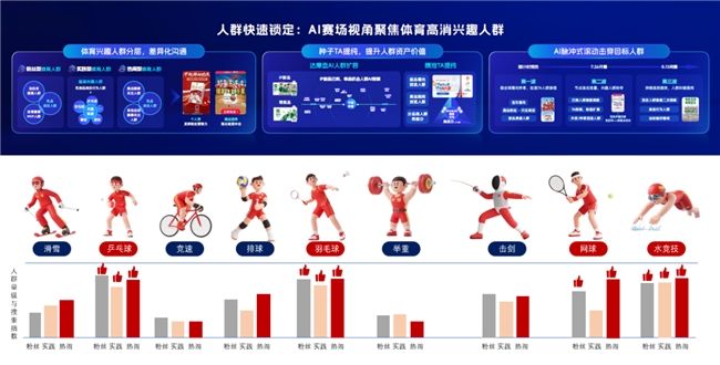 首先,通過挖掘用戶跨平臺(tái)行為關(guān)聯(lián),識(shí)別奧運(yùn)期間的高潛體育消費(fèi)人群,聚類為“體育粉絲型”“健康實(shí)踐型”和“賽事熱鬧型”三大核心人群,并動(dòng)態(tài)調(diào)整運(yùn)營(yíng)策略。例如,針對(duì)“乒乓賽事粉絲人群”推送“乒乓運(yùn)動(dòng)員同款I(lǐng)P產(chǎn)品”等內(nèi)容。