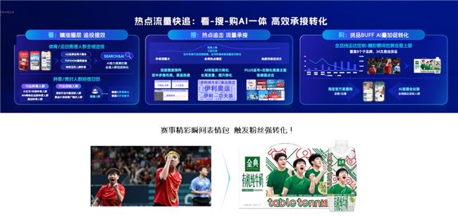 其次,深度洞察賽事全周期看點(diǎn),科學(xué)排布阿里營(yíng)銷資源。奧運(yùn)初期,伊利通過明星運(yùn)動(dòng)員與賽事曝光提升站外曝光;超級(jí)品牌日承接站外人群到站內(nèi)聯(lián)動(dòng)曝光;賽事高潮期舉辦活動(dòng)強(qiáng)化互動(dòng)。WPP Media(群邑)利用AI拓詞覆蓋搜索流量,導(dǎo)入新品全站推強(qiáng)化拉新。