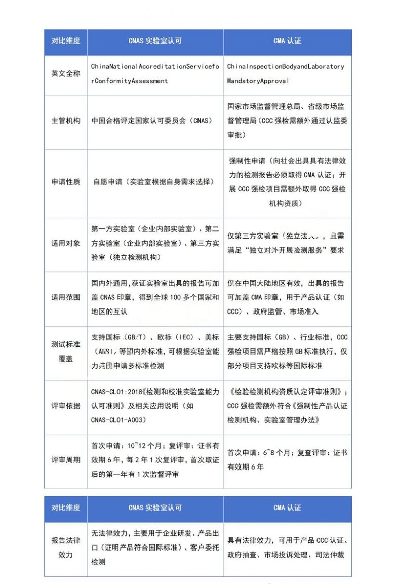 1、CNAS認(rèn)可與CMA認(rèn)證差異對比