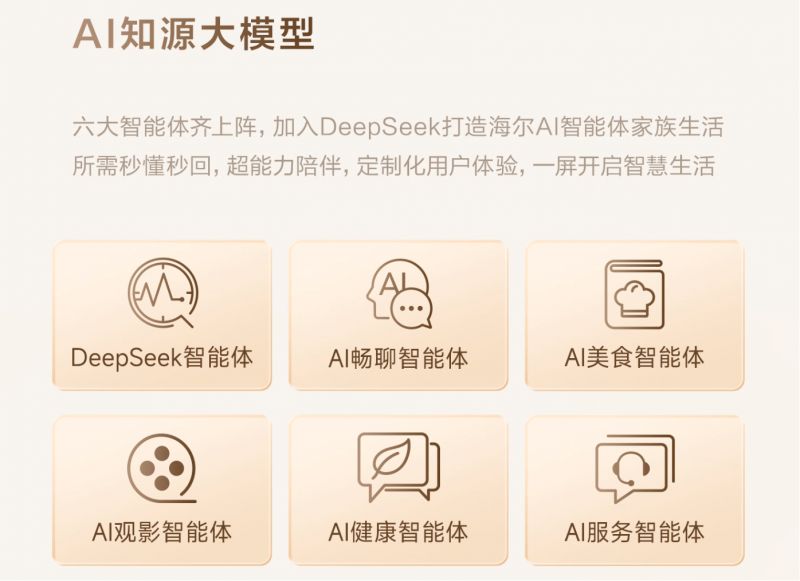 除了AI服務(wù)智能體外,海爾電視在AI科技加持下,也突破了傳統(tǒng)電視的功能邊界,搭載的AI知源大模型,還內(nèi)置了AI觀影智能體、AI健康智能體、AI暢聊智能體以及AI美食智能體,能夠協(xié)助解決生活中的各種問(wèn)題。