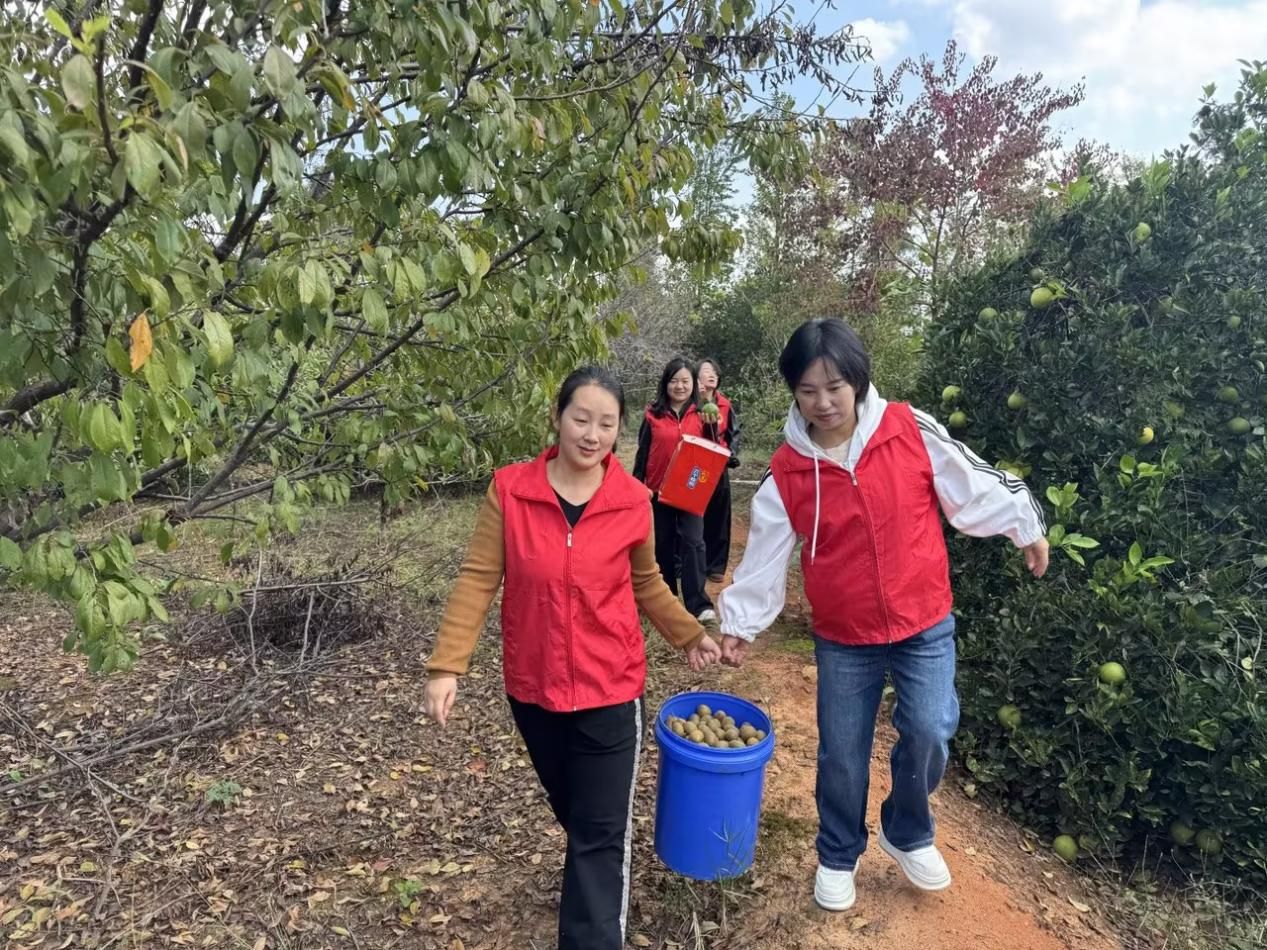 “摘柑橘要選顏色金黃、果實(shí)飽滿的,剪的時(shí)候要留一小段果梗,別傷到果皮。”陳大伯耐心地示范。第一次參與采摘的志愿者王雨婷認(rèn)真聆聽,小心地托起果實(shí),利落一剪,金黃的柑橘穩(wěn)穩(wěn)落入筐中。采摘組志愿者穿梭于果樹之間,搬運(yùn)組的小伙子們肩挑手提,在坡地上來(lái)回奔波,將一筐筐果實(shí)運(yùn)往集中點(diǎn)。冬日陽(yáng)光下,躍動(dòng)的“紅馬甲”成為果園里最溫暖的風(fēng)景。