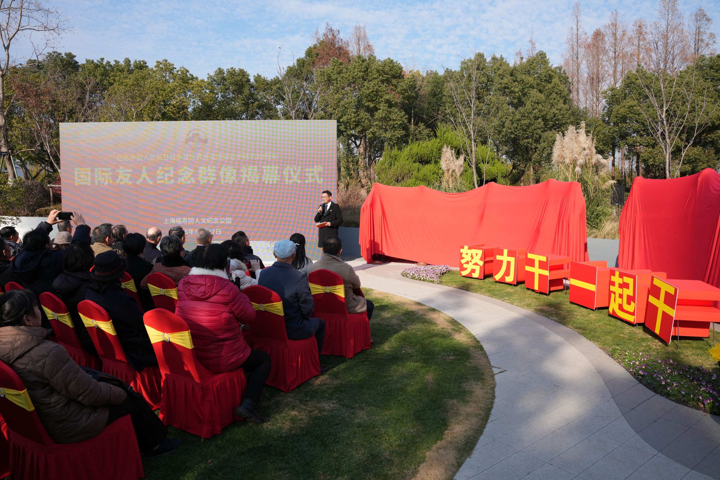 中國工合國際委員會(huì)主席柯馬凱,上海市第十四屆人大常委會(huì)副主任、上海宋慶齡研究會(huì)會(huì)長薛潮,福壽園國際集團(tuán)董事會(huì)主席白曉江出席,并和與會(huì)嘉賓共同為國際友人紀(jì)念群像揭幕。