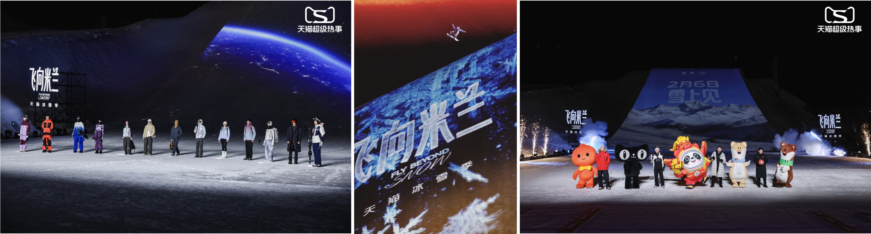 實(shí)際上,天貓正在這里打造一場(chǎng)盛大的冰雪季活動(dòng)——以“飛向米蘭”為主題,采用了雪域到米蘭的三部曲設(shè)定,不僅是秀場(chǎng)創(chuàng)意,也是對(duì)中國(guó)冰雪產(chǎn)業(yè)升級(jí)路徑的精妙隱喻。在飛行的最高點(diǎn),指向終極目標(biāo)米蘭,現(xiàn)實(shí)呈現(xiàn)了“從中國(guó)冰雪消費(fèi)通向2026米蘭冬奧的靈感與潮流中轉(zhuǎn)站”的定位。